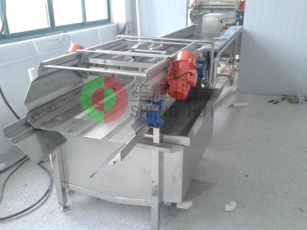 江蘇FR食品公司主要從事凈菜加工配送等業(yè)務,對蔬菜加工設備和加工成品的要求非常高,清洗蔬菜都采用經(jīng)過凈化處理的水。該公司近期擴大產(chǎn)能,需新增加幾條生產(chǎn)線,經(jīng)過考察,對我公司產(chǎn)品很滿意,訂購了一條由切菜機和2套渦流洗菜機組成的蔬菜切割、清洗生產(chǎn)線。