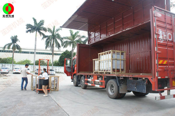 客戶訂購的一批蔬果清洗切割加工機(jī)械裝車出貨!
