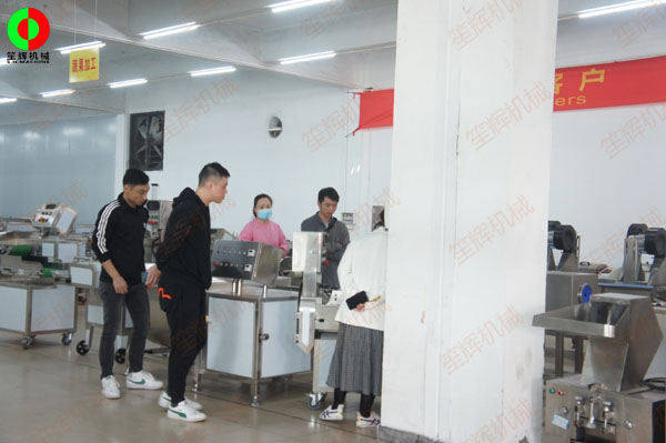 客戶現(xiàn)場(chǎng)了解瓜果分瓣及切割設(shè)備,最后現(xiàn)場(chǎng)簽定合同交付定金!笙輝機(jī)械專注于肉類、水產(chǎn)、果蔬類等食品前處理加工機(jī)械的研發(fā)生產(chǎn)、制造,滿足客戶各類中*央廚房生產(chǎn)線非標(biāo)工程定制實(shí)施!