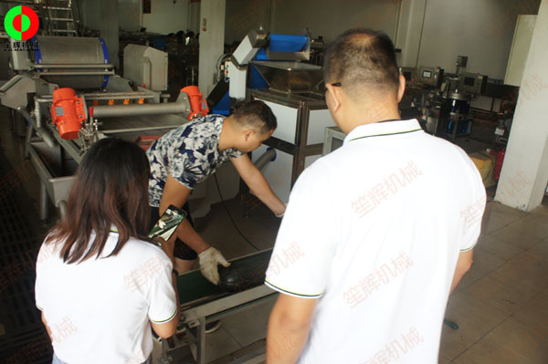 東莞客戶來廠現(xiàn)場測試臥式冬瓜削皮加工機械設(shè)備!