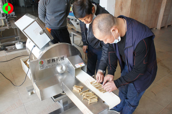 客戶來司現(xiàn)場(chǎng)測(cè)試酸筍切條加工設(shè)備!