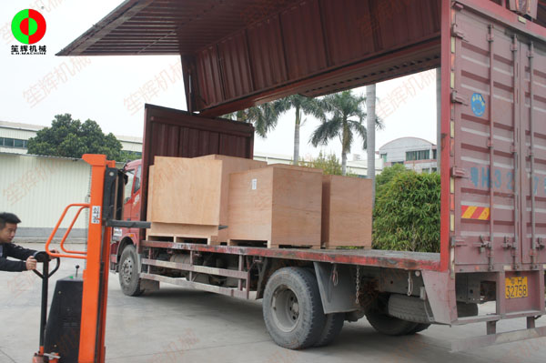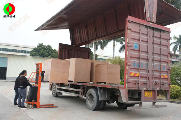 國外客戶訂購的一批毛刷清洗去皮機及瓜果削皮機裝車出貨!