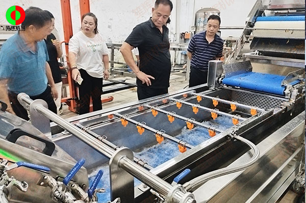 客戶來廠測試驗(yàn)貨果蔬清洗加工設(shè)備!