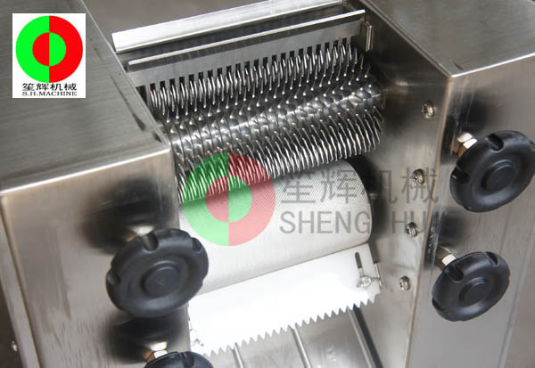 - 產(chǎn)品優(yōu)勢(shì): 用途:用于豬肉,牛肉,羊肉片增大,松開(kāi)肉筋,使肉片賣(mài)相好,口感好。機(jī)器原理:1.通過(guò)上層刀組,不銹鋼帶齒壓輪,帶齒設(shè)計(jì),能有效放大肉片尺寸及松肉效果。2.通過(guò)下層刀組,斷筋部分,能刺穿肉片,增強(qiáng)嫩化及松肉效果。