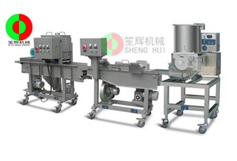 - 產(chǎn)品優(yōu)勢: 自動肉餅成型機生產(chǎn)線能自動完成肉餅成型,上漿,上粉,上面包屑等工序。通過更換不同的模具能實現(xiàn)生產(chǎn)不同形狀的產(chǎn)品。整機采用不銹鋼材質(zhì)制造,耐磨耐用,符合衛(wèi)*生標(biāo)準(zhǔn)。適合制作漢堡肉餅、雞塊餅,魚餅,土豆餅,南瓜餅等等食品。生產(chǎn)線自動化程度高,操作簡單,清洗方便,性能穩(wěn)定,可靠。