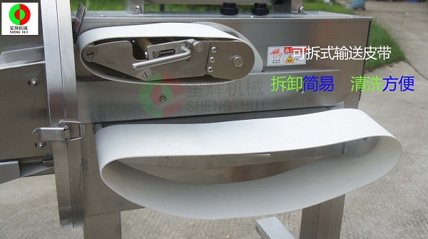 - 產(chǎn)品優(yōu)勢: SH-120SD 型切肉機,采用的刀片,堅韌耐用;進料和出料均采用輸送帶動方式,皮帶拆卸和安裝都非常方便快捷,利于工作完成后對機器進行清潔保養(yǎng);出料口采用平面皮帶輸送方式,物料切割完后可以整齊地輸送出來,能滿足下一步工序的操作。