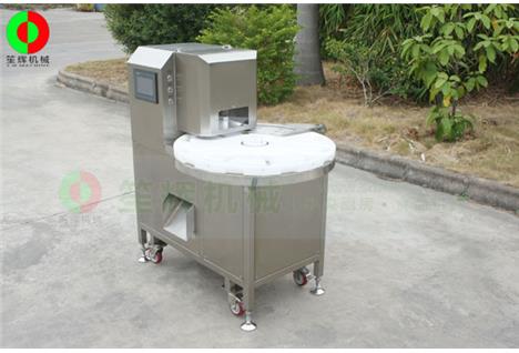 QYB-50保留原有鴨脖切段機的加工效率高、切面整齊、切割長短位置精準(zhǔn)一致等優(yōu)點的基礎(chǔ)上,結(jié)構(gòu)進行了整體優(yōu)化,取代原有機械傳動更改為私服電機驅(qū)動,設(shè)備傳動更加簡潔,噪音更低,大大減少了設(shè)備使用過程中的維護工作,基本可實現(xiàn)零維護。放料盤與沖切部件相對運動采用電感式連鎖控制,PLC自動調(diào)整定位,傳動穩(wěn)定無誤差。觸摸控制屏可輕松設(shè)定切割速度及了解切割效率。該機器結(jié)構(gòu)緊湊,外形美觀,采用優(yōu)化衛(wèi)生設(shè)計,與食品接觸部件均采用符合食品安*全的材料制成。帶有萬向帶剎車腳輪方便移機,能夠靈活調(diào)度提高生產(chǎn)效率;機器采用型腔式放料裝置,不損傷產(chǎn)品,針對彎曲形狀不規(guī)則的鴨脖或鳳爪等實現(xiàn)精準(zhǔn)切割;切割采用成型刀板切割,切割長度準(zhǔn)確,切面整齊,無粘連,不產(chǎn)生骨屑。刀板、轉(zhuǎn)盤、壓料板均可實現(xiàn)無工具拆卸設(shè)計,方便清洗殺菌更換,符合熟肉制品生產(chǎn)工藝。生產(chǎn)效率最高可達4800只/H,滿足廣大用戶的生產(chǎn)需要。